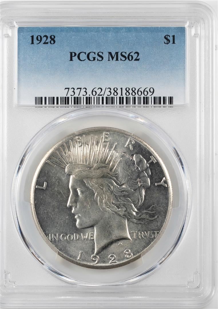 One 1928 $1 Peace Silver Dollar Coin PCGS MS62. PCGS Graded.