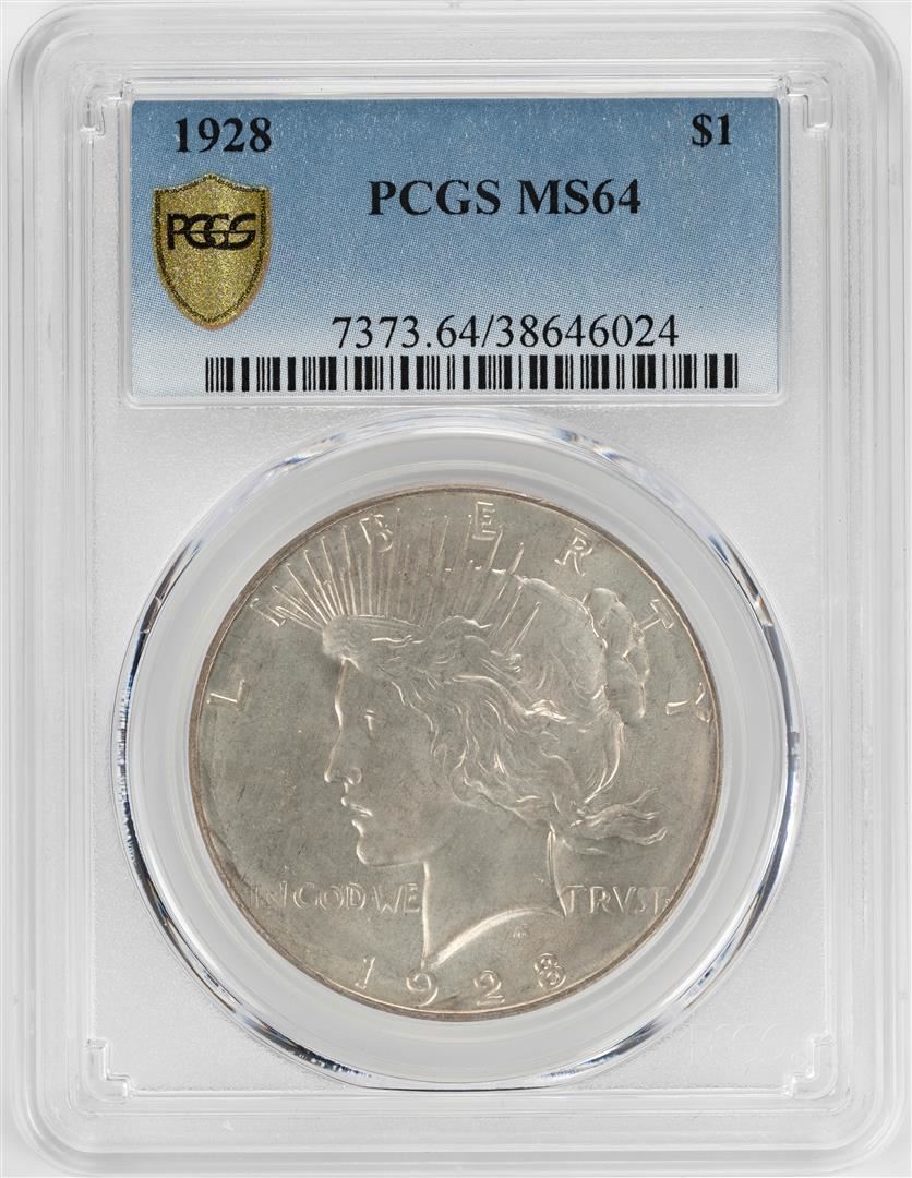 One 1928 $1 Peace Silver Dollar Coin PCGS MS64. PCGS Graded.
