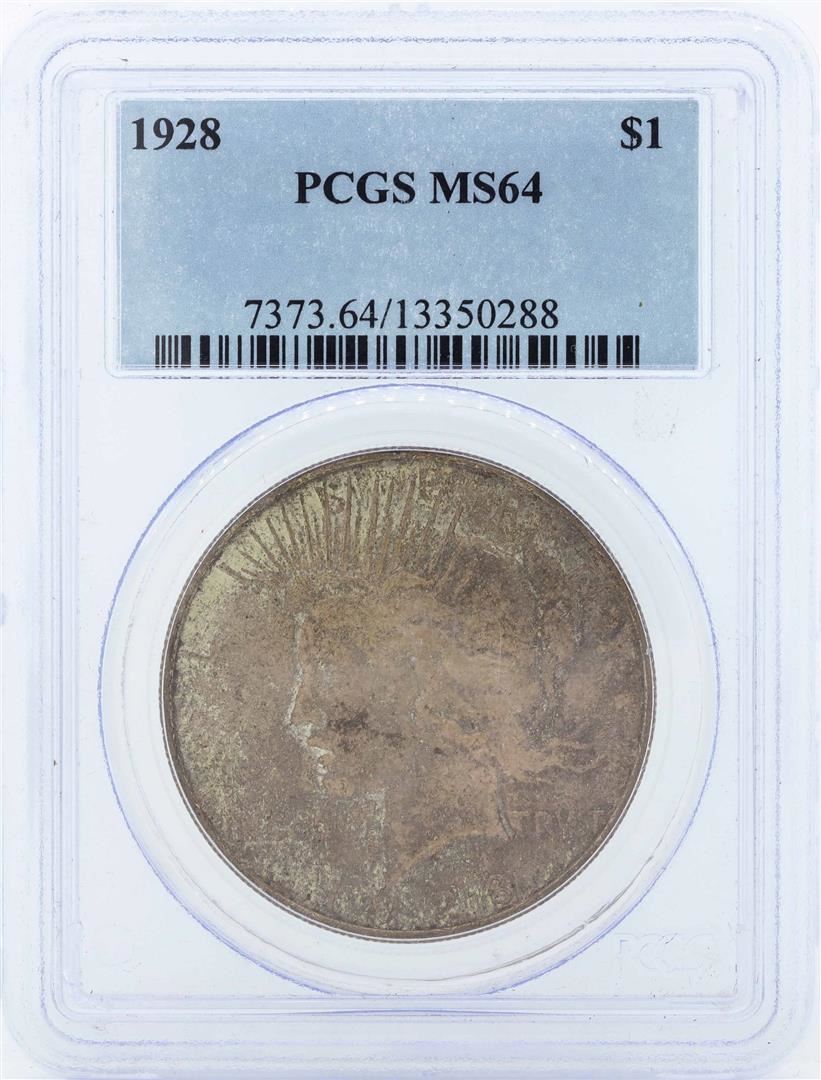 One 1928 $1 Peace Silver Dollar Coin PCGS MS64. PCGS Graded.
