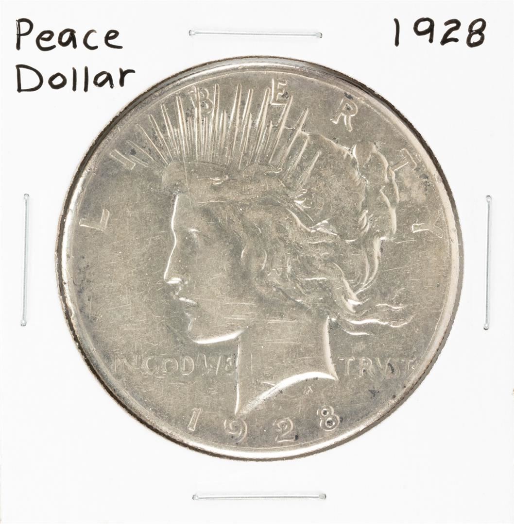 One 1928 $1 Peace Silver Dollar Coin.