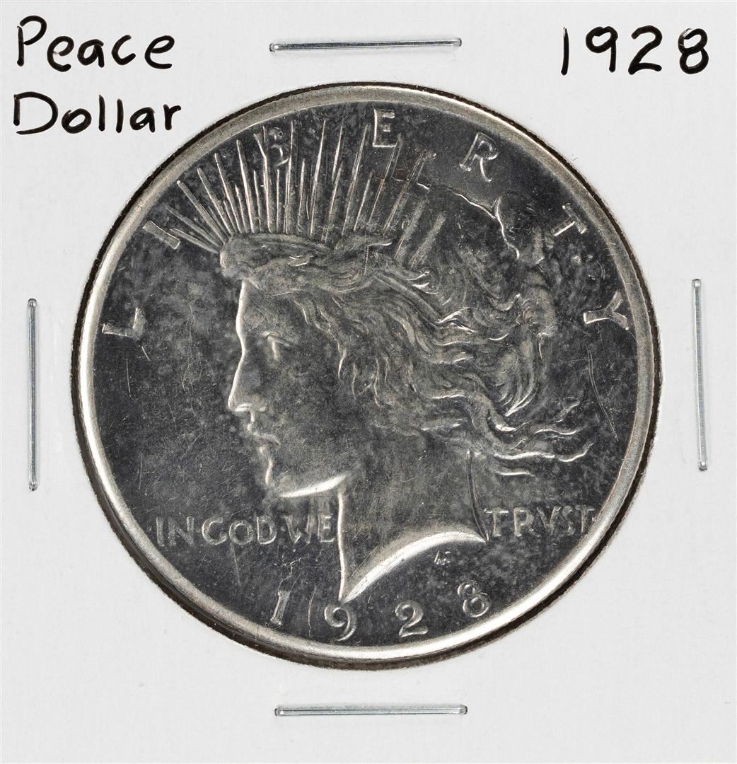 One 1928 $1 Peace Silver Dollar Coin.