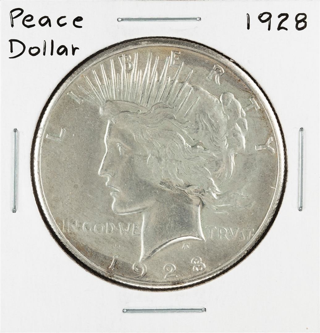 One 1928 $1 Peace Silver Dollar Coin.