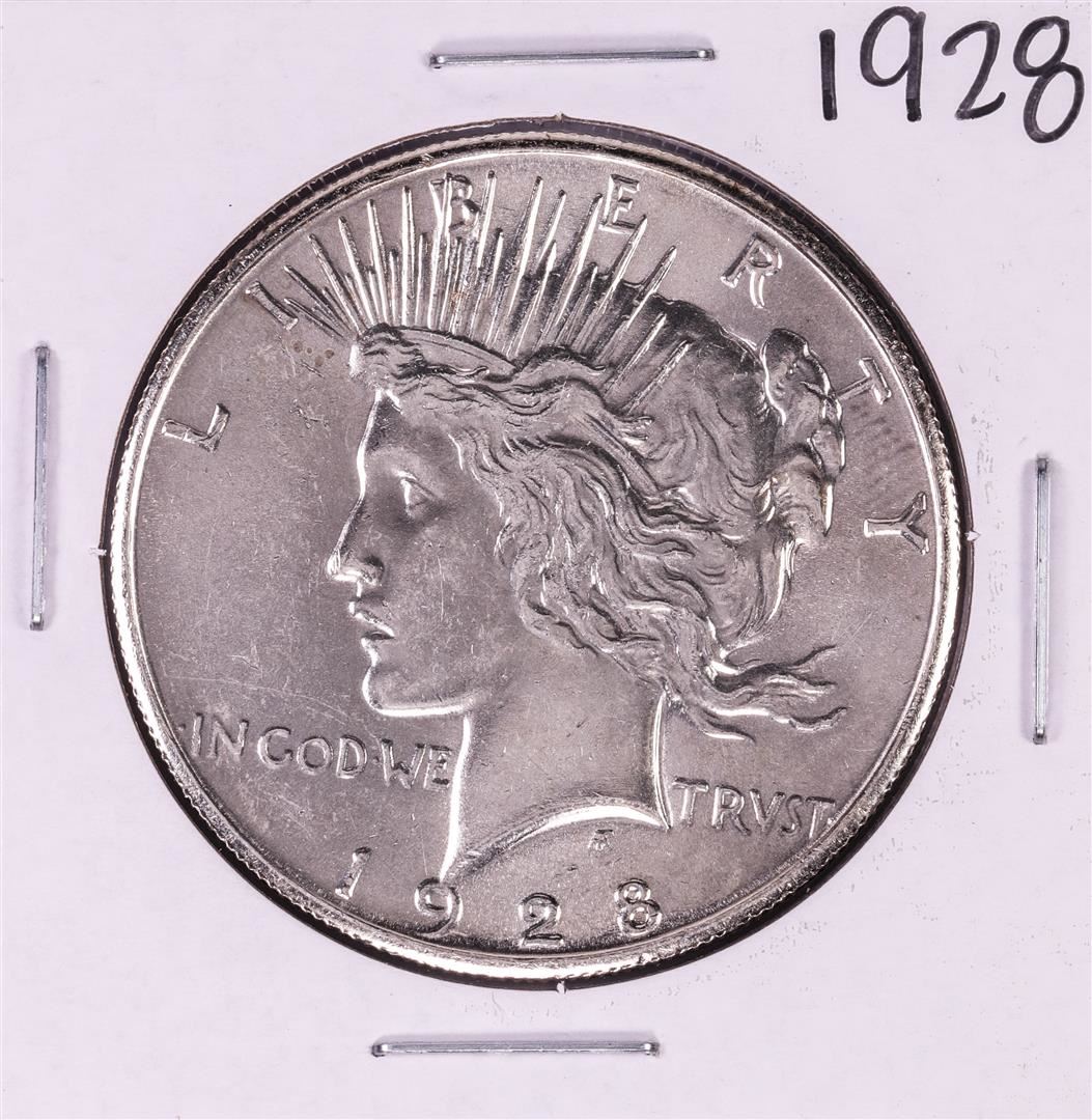 One 1928 $1 Peace Silver Dollar Coin.