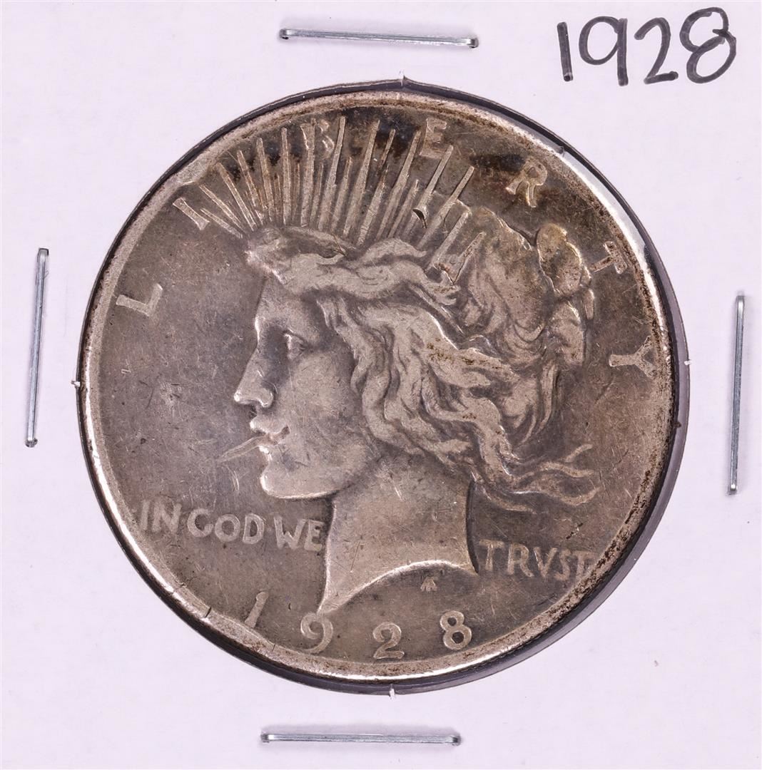 One 1928 $1 Peace Silver Dollar Coin.