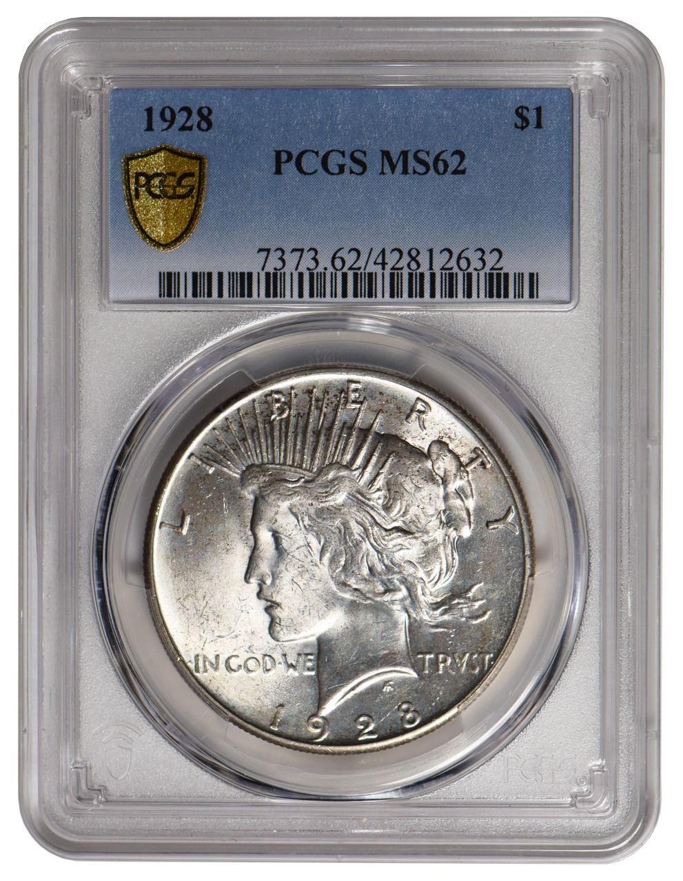 One 1928 $1 Peace Silver Dollar PCGS MS62.