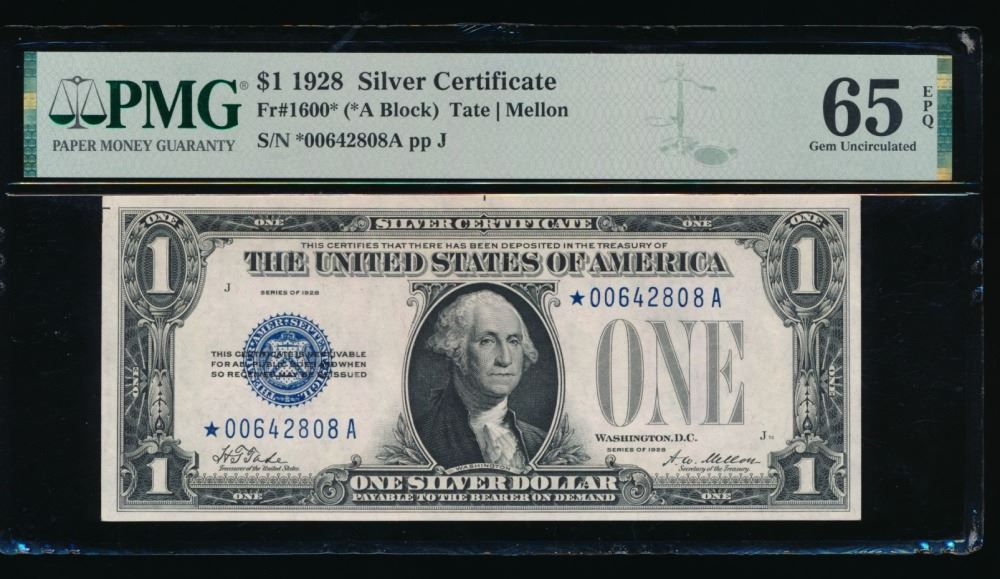 One 1928 $1 STAR Silver Certificate PMG 65EPQ.