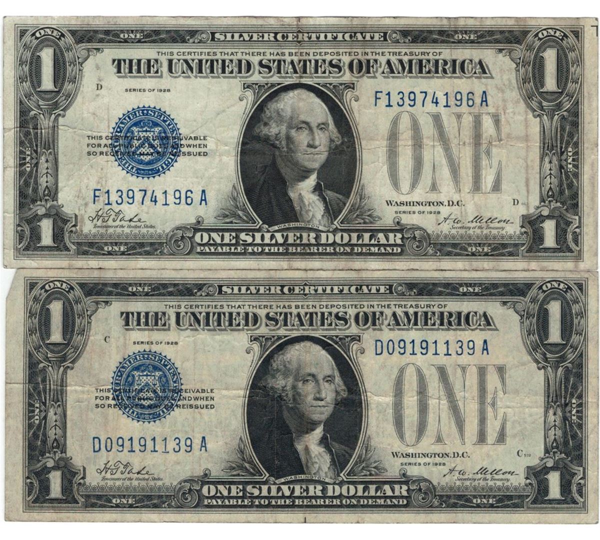 One 1928 $1 Silver Certificate Currency Lot of 2.