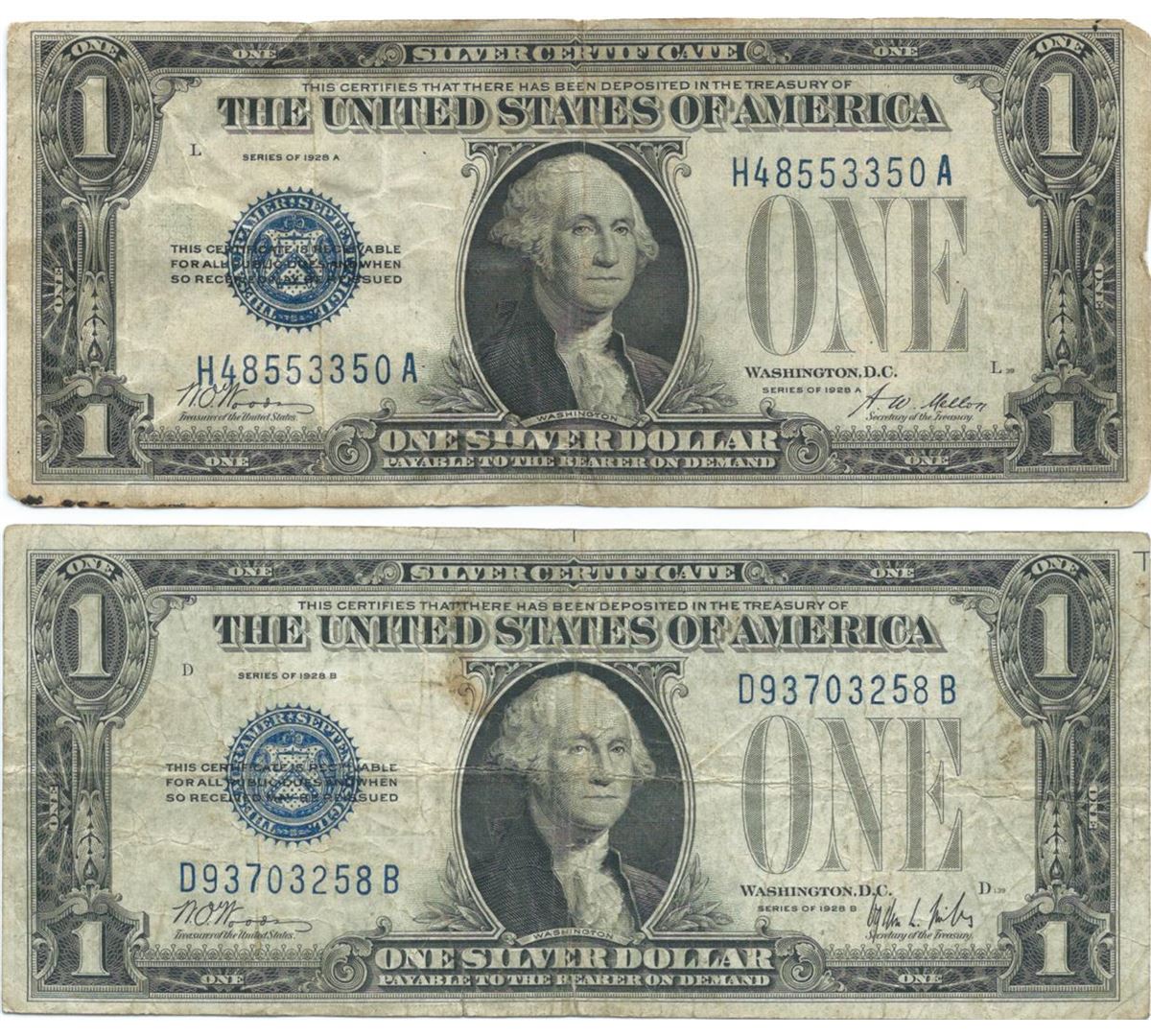 One 1928 $1 Silver Certificate Currency Lot of 2.