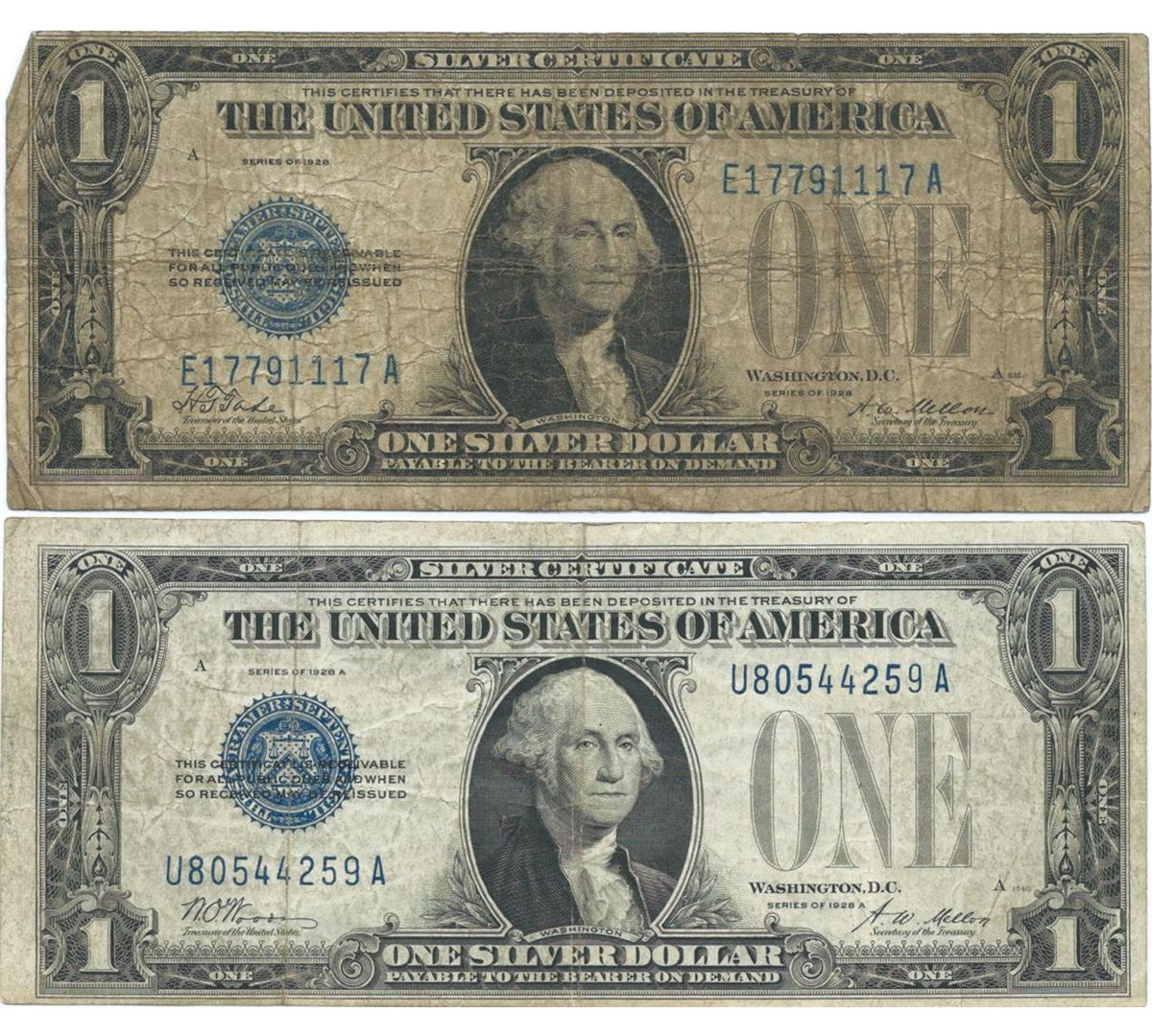 One 1928 $1 Silver Certificate Currency Lot of 2.
