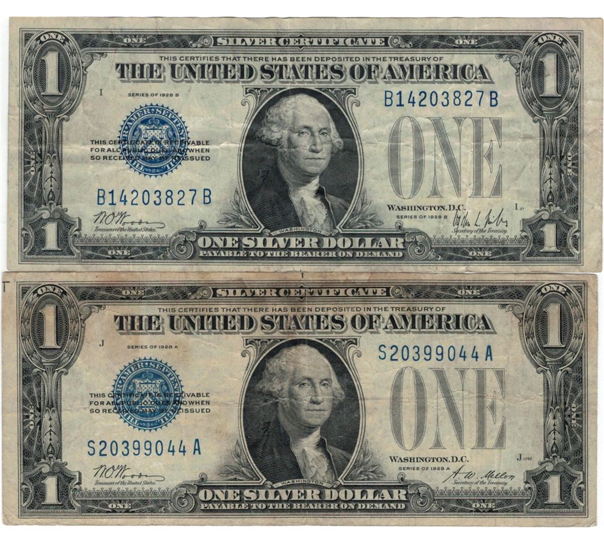 One 1928 $1 Silver Certificate Currency Lot of 2.