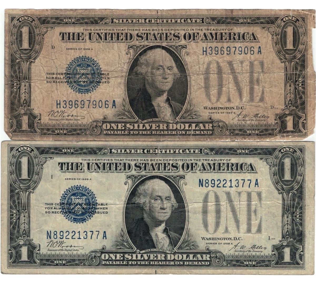 One 1928 $1 Silver Certificate Currency Lot of 2.
