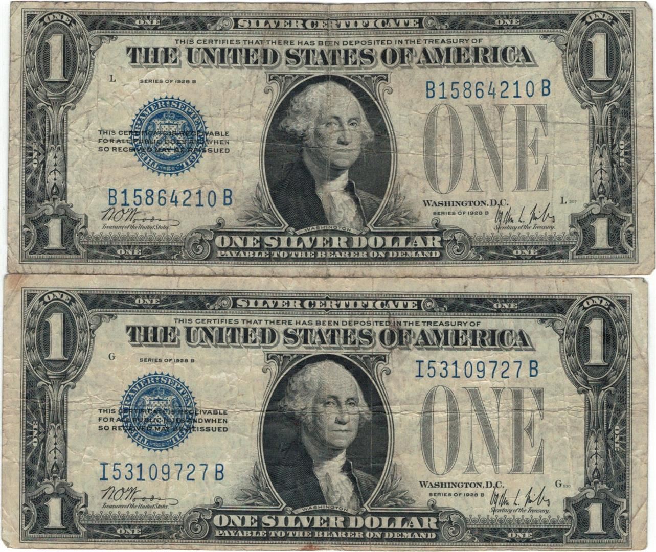 One 1928 $1 Silver Certificate Currency Lot of 2.