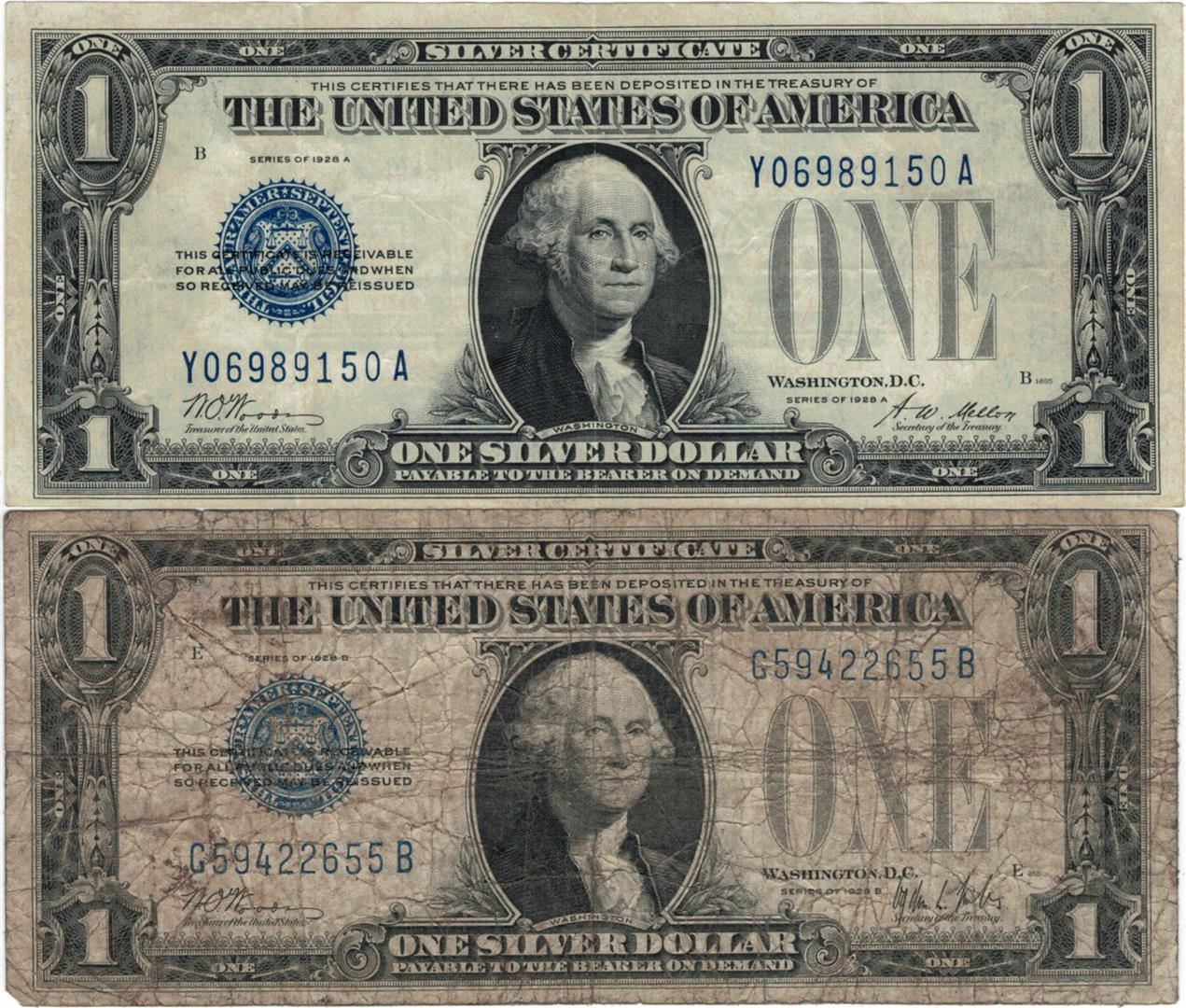 One 1928 $1 Silver Certificate Currency Lot of 2.