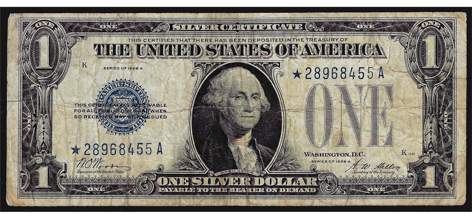 One 1928 $1 Silver Certificate Funnyback STAR Note.