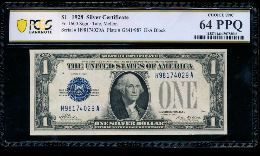 One 1928 $1 Silver Certificate PCGS 64PPQ.