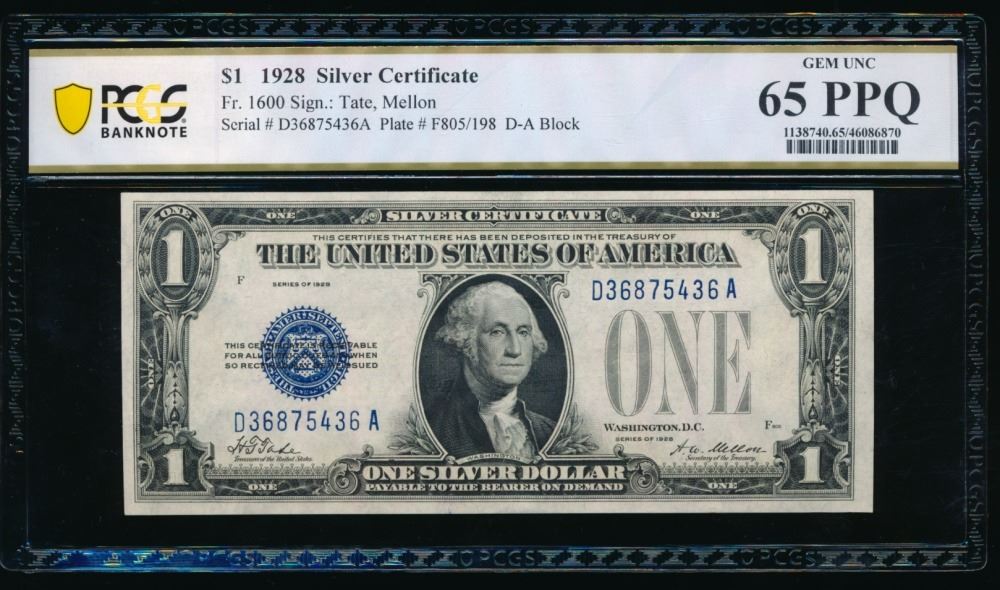 One 1928 $1 Silver Certificate PCGS 65PPQ.