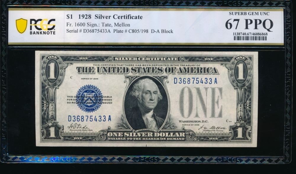 One 1928 $1 Silver Certificate PCGS 67PPQ.