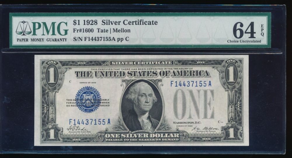 One 1928 $1 Silver Certificate PMG 64EPQ.