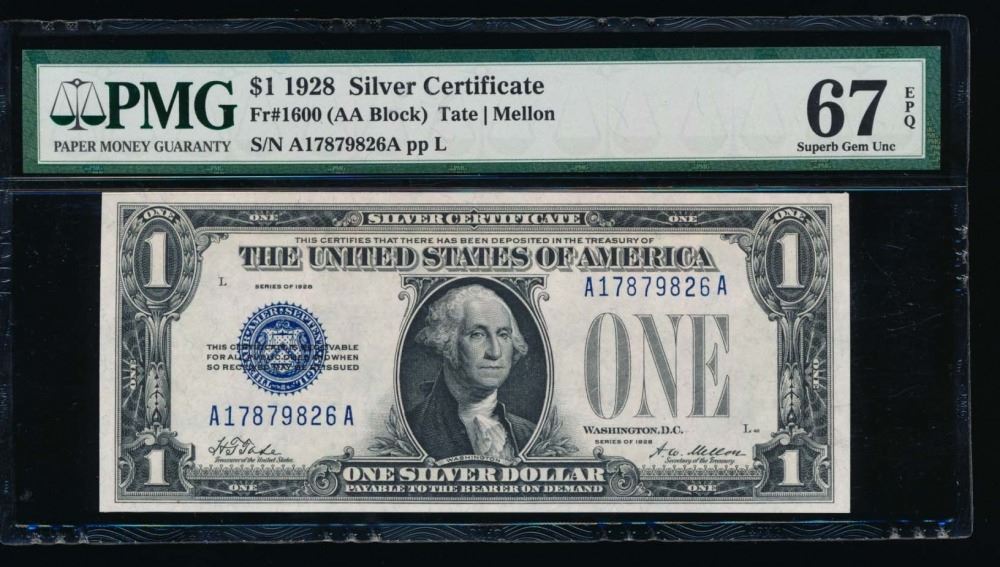 One 1928 $1 Silver Certificate PMG 67EPQ.
