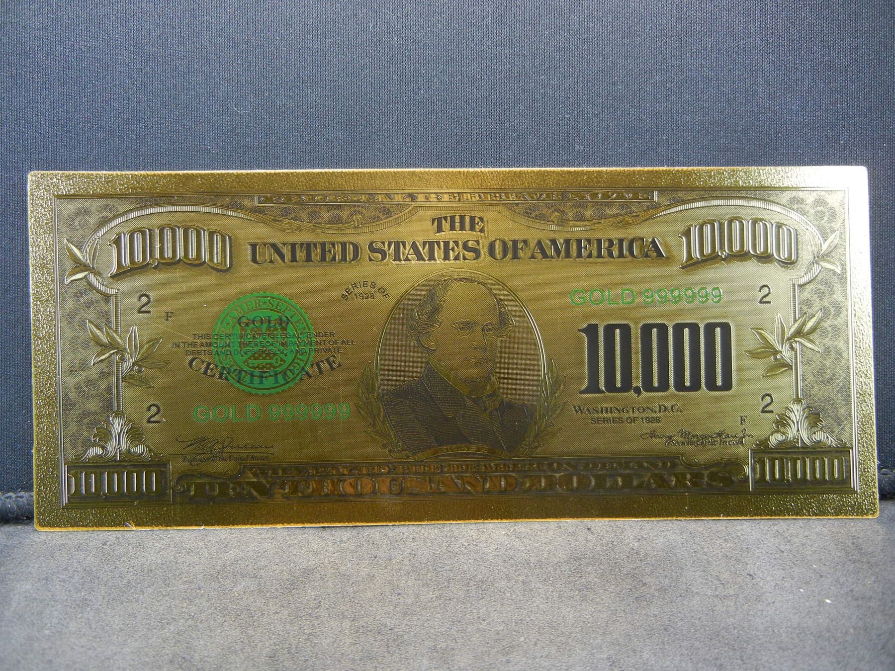 1928 $10,000 Gold Certificate 24K Gold Foil Note (Not Legal Tender)