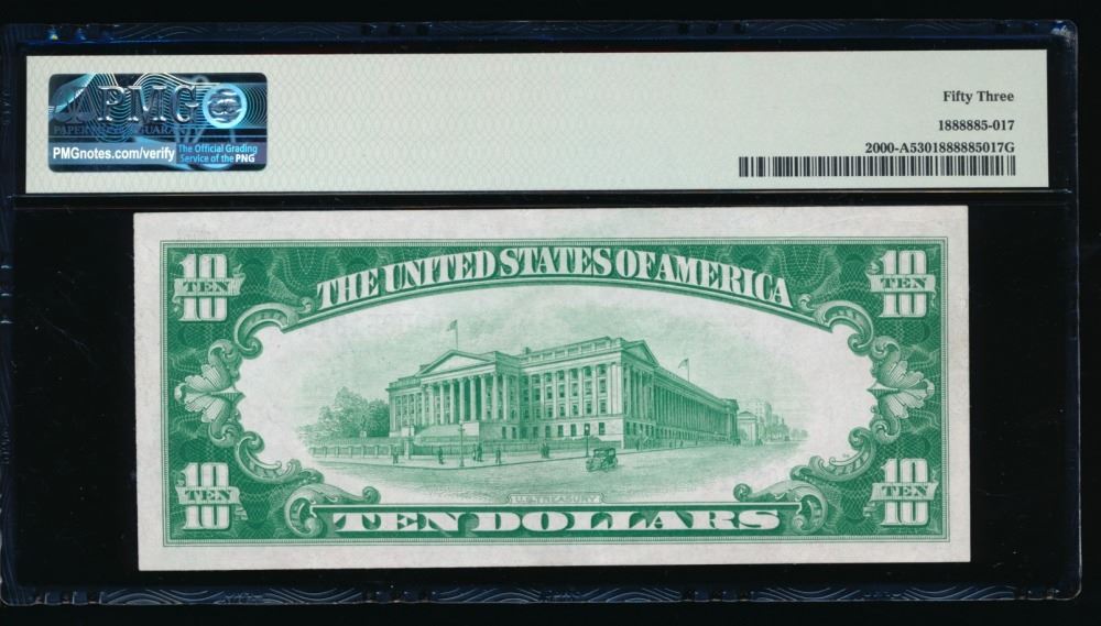 One 1928 $10 Boston FRN PMG 53.