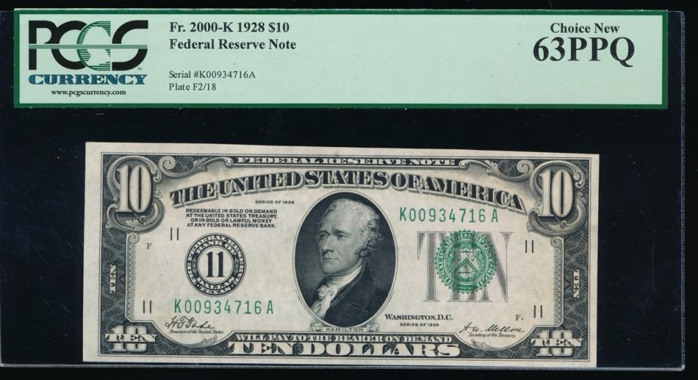 One 1928 $10 Dallas Federal Reserve Note PCGS 63PPQ.