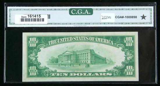 1928, $10 Federal Reserve Note. CGA Gem Uncirculated 65