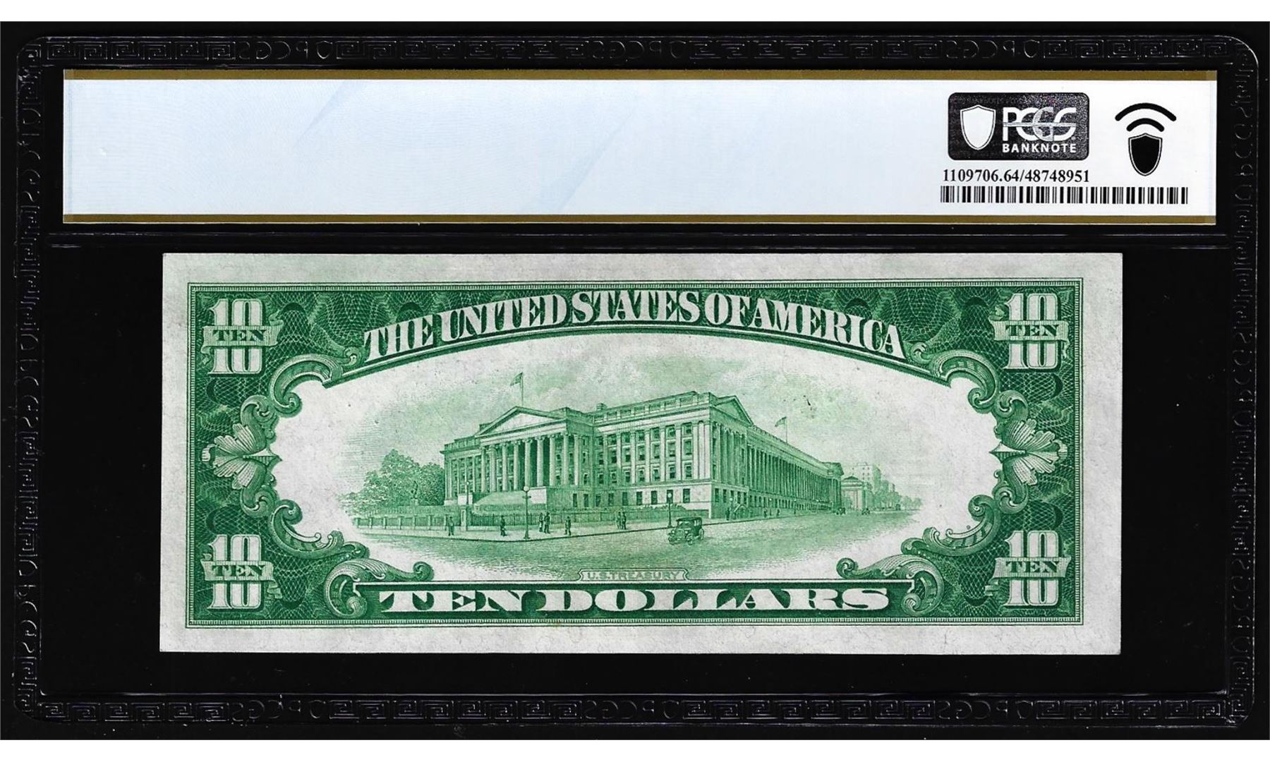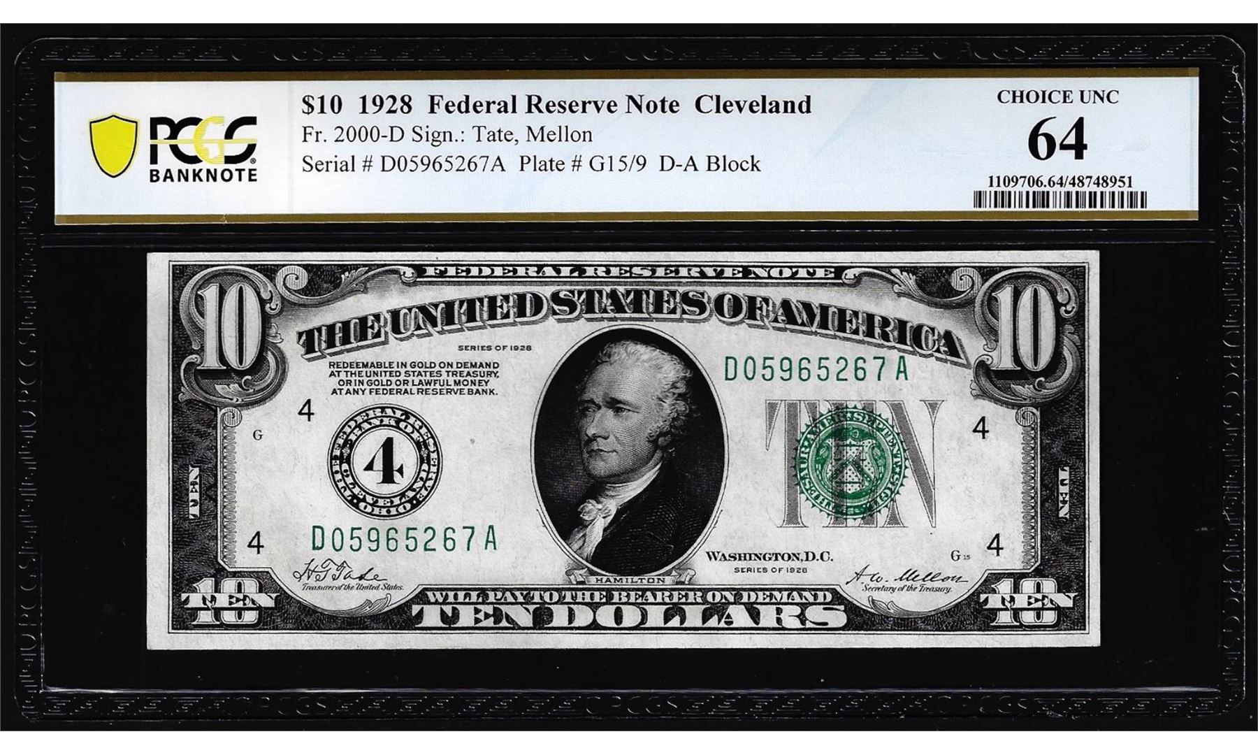 1928 $10 Federal Reserve Note Cleveland Fr.2000-D PCGS Choice Uncirculated 64