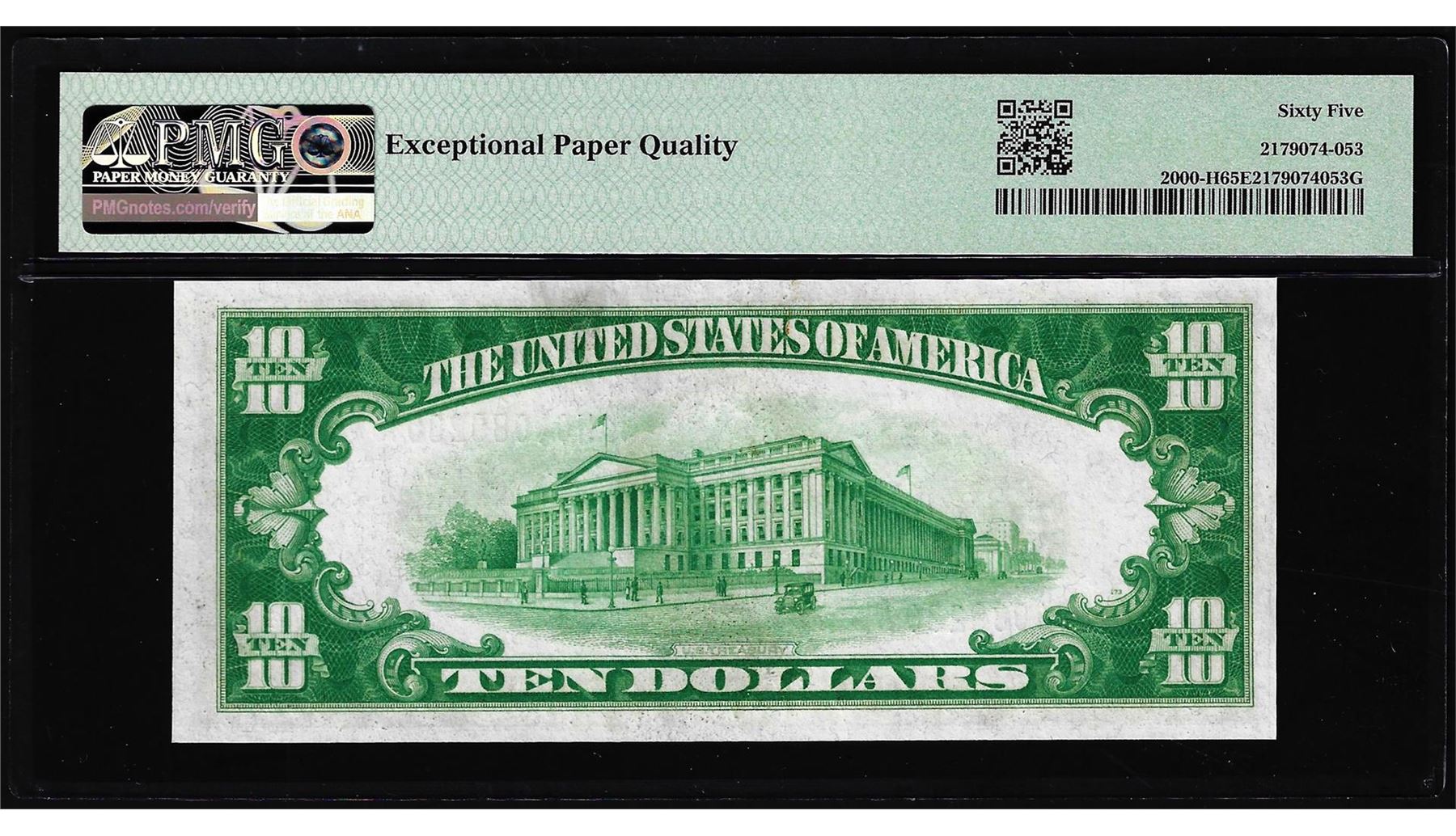 One 1928 $10 Federal Reserve Note St. Louis Fr.2000-H PMG Gem Uncirculated 65EPQ. PMG Certified.