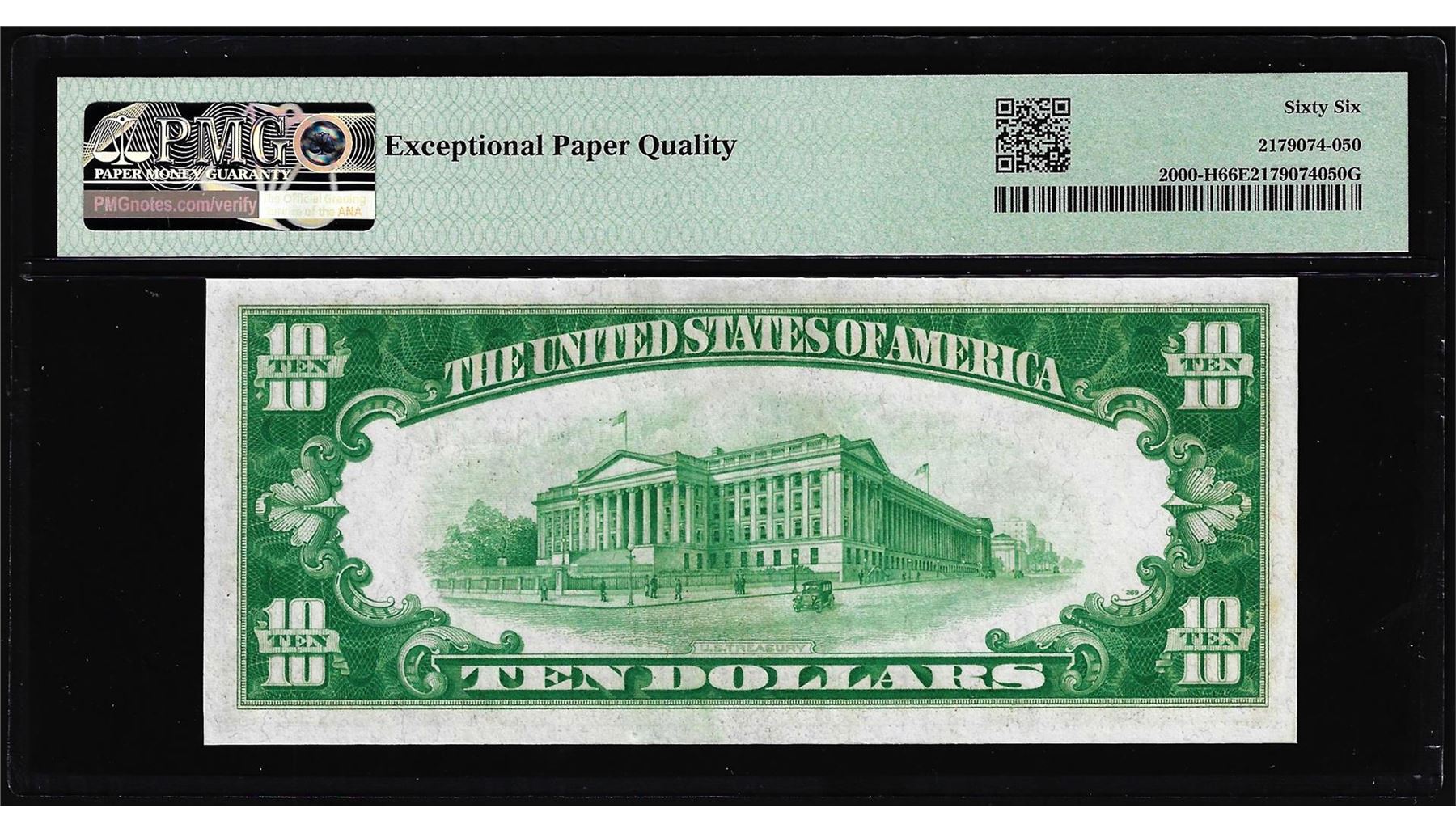 1928 $10 Federal Reserve Note St. Louis Fr.2000-H PMG Gem Uncirculated 66EPQ