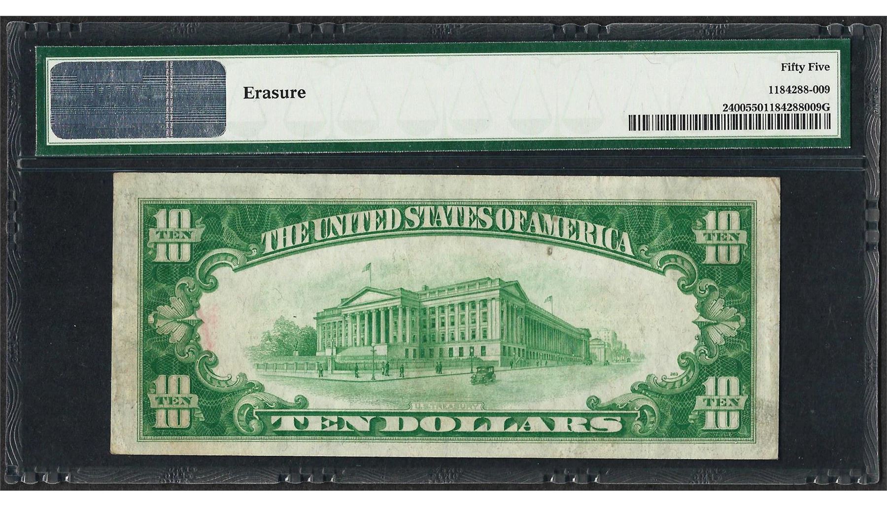 1928 $10 Gold Certificate Note Fr.2400 PMG About Uncirculated 55