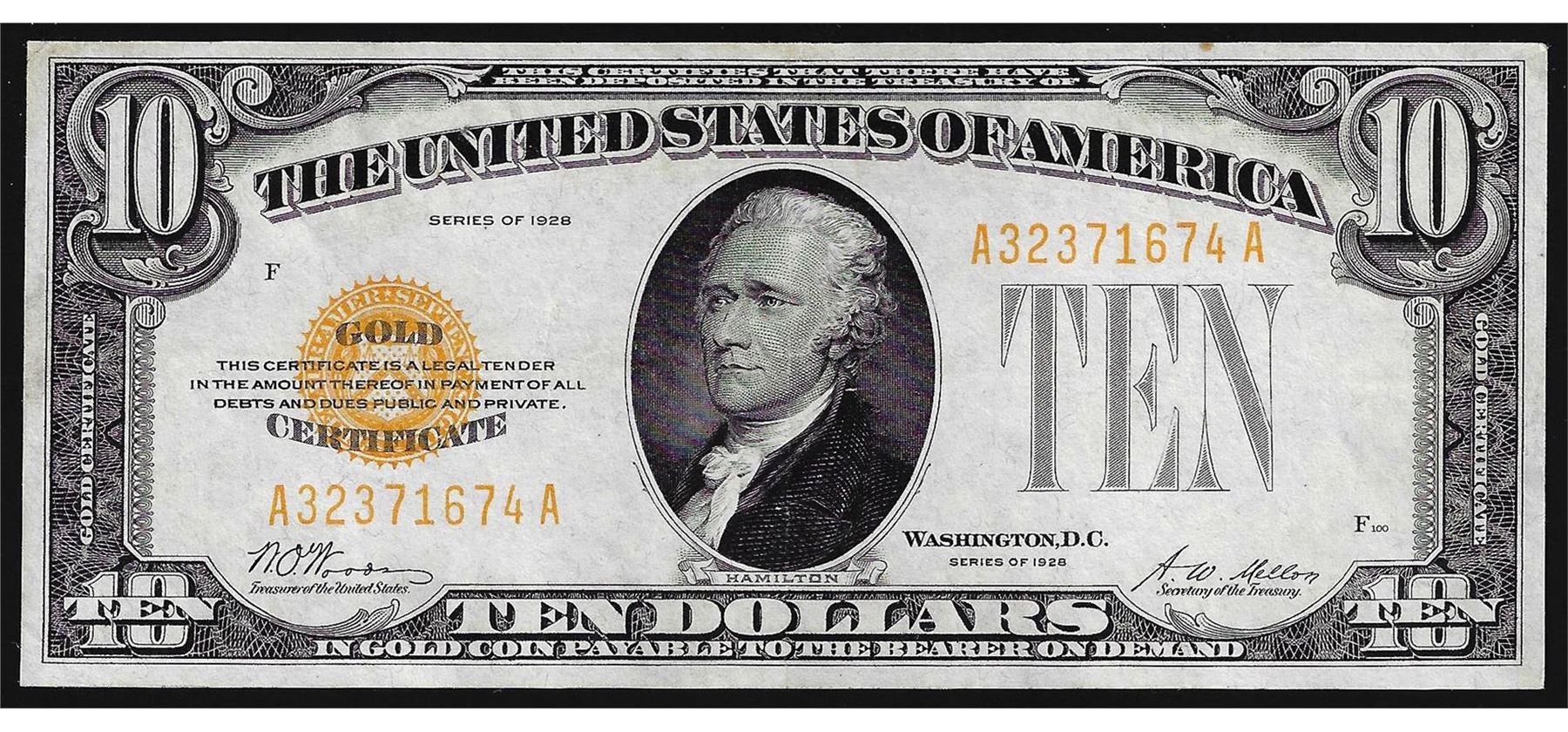 One 1928 $10 Gold Certificate Note.