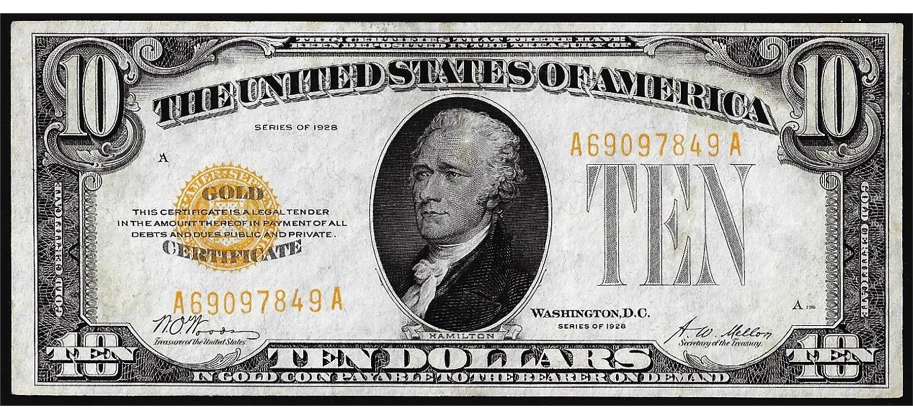 One 1928 $10 Gold Certificate Note.