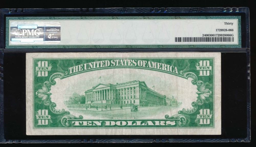One 1928 $10 Gold Certificate PMG 30.