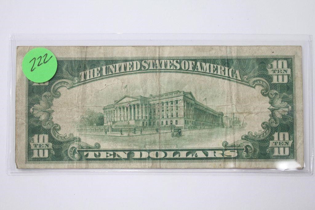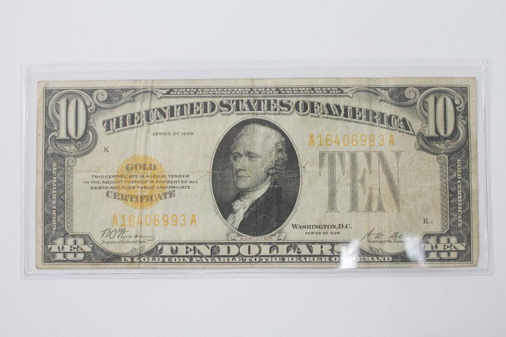 A 1928 $10 Gold Certificate in solid VF+ condition. Always popular the last of the gold certificates are highly collectible.