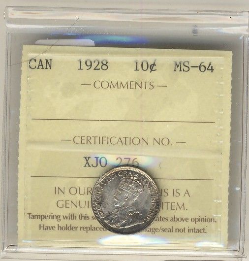 1928 10¢ ICCS MS64. PQ for eye appeal.