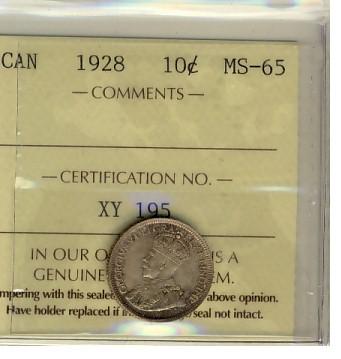 1928 10¢ ICCS MS65, another lovely GEM example.