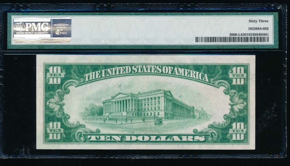 One 1928 $10 San Francisco Federal Reserve Note PMG 63.