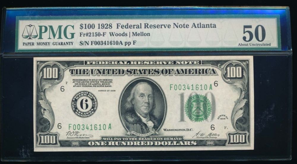 One 1928 $100 Atlanta Federal Reserve Note PMG 50.