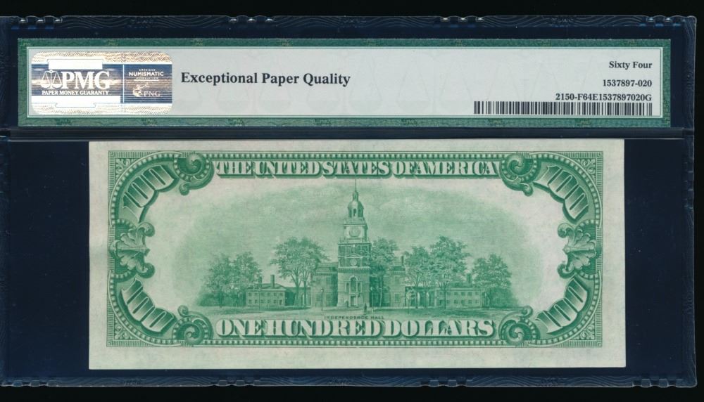 One 1928 $100 Atlanta Federal Reserve Note PMG 64EPQ.