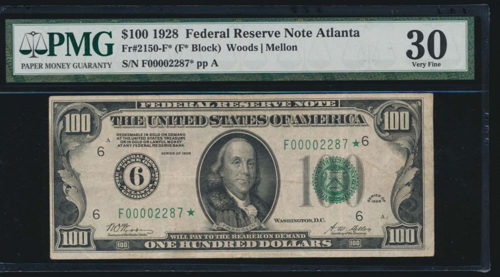 One 1928 $100 Atlanta Federal Reserve STAR Note PMG 30.