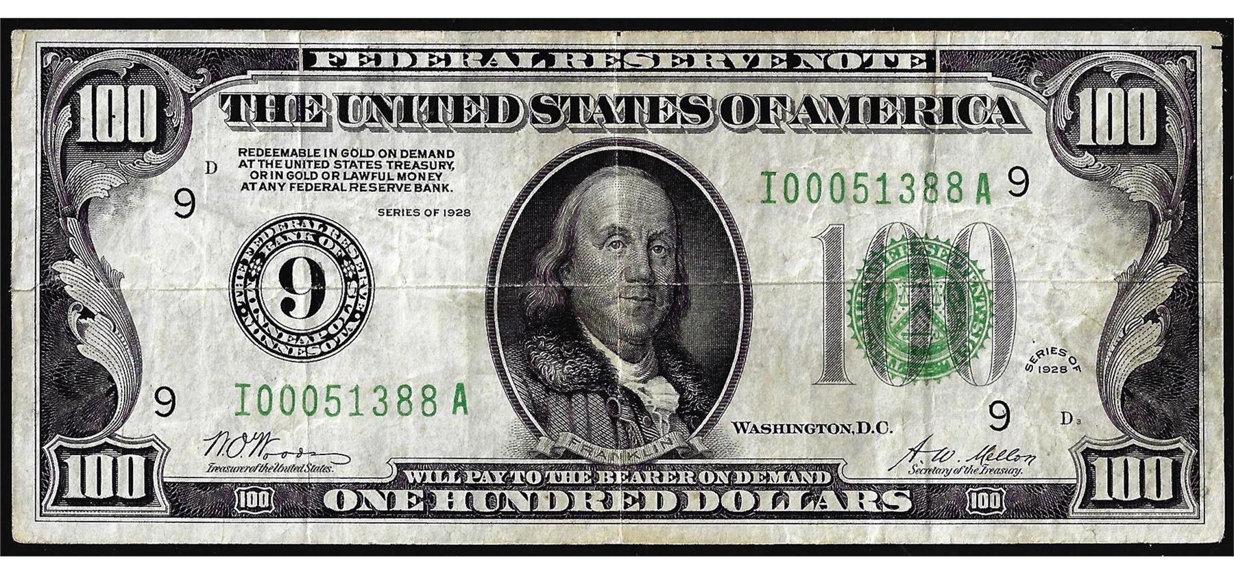 One 1928 $100 Federal Reserve Note Minneapolis.