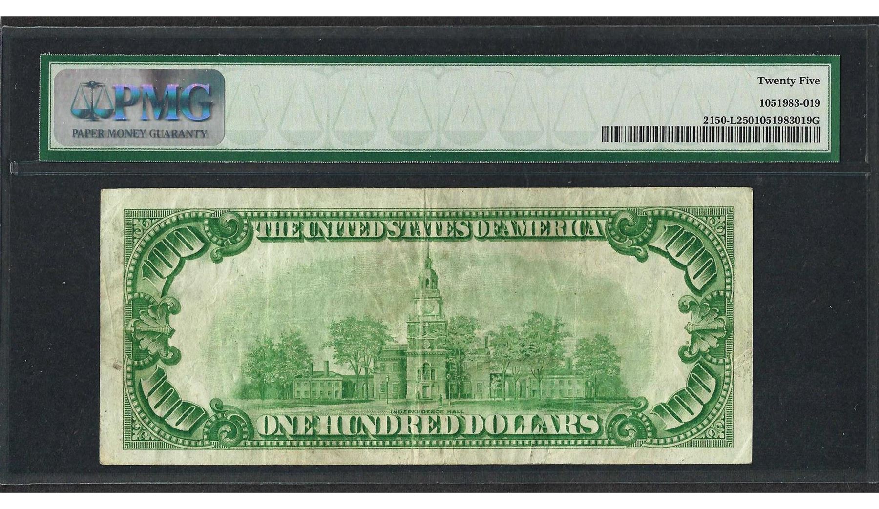 1928 $100 Federal Reserve Note San Francisco Fr.2150-L PMG Very Fine 25