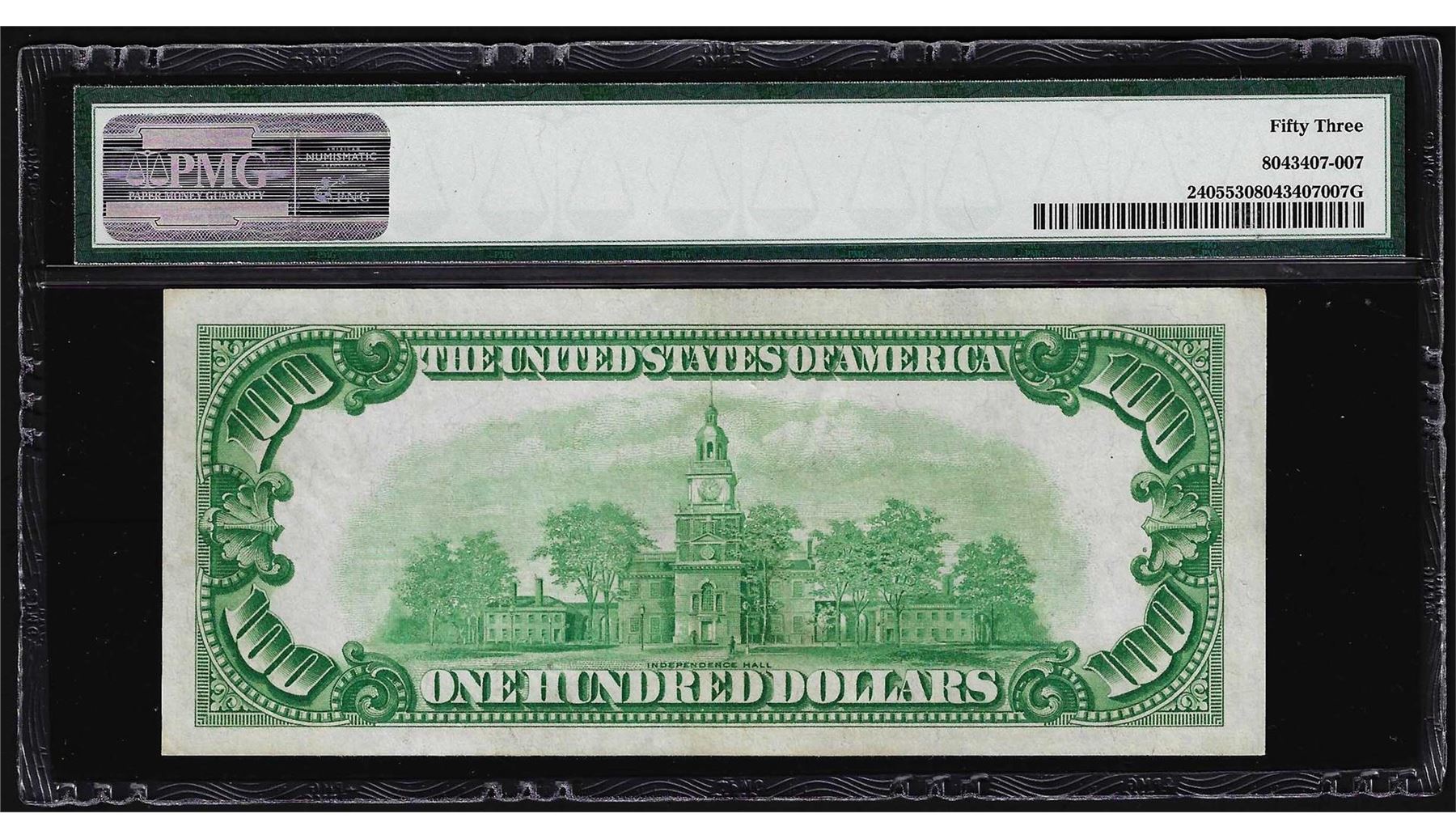 One 1928 $100 Gold Certificate Note Fr. 2405 PMG About Uncirculated 53. PMG Certified.