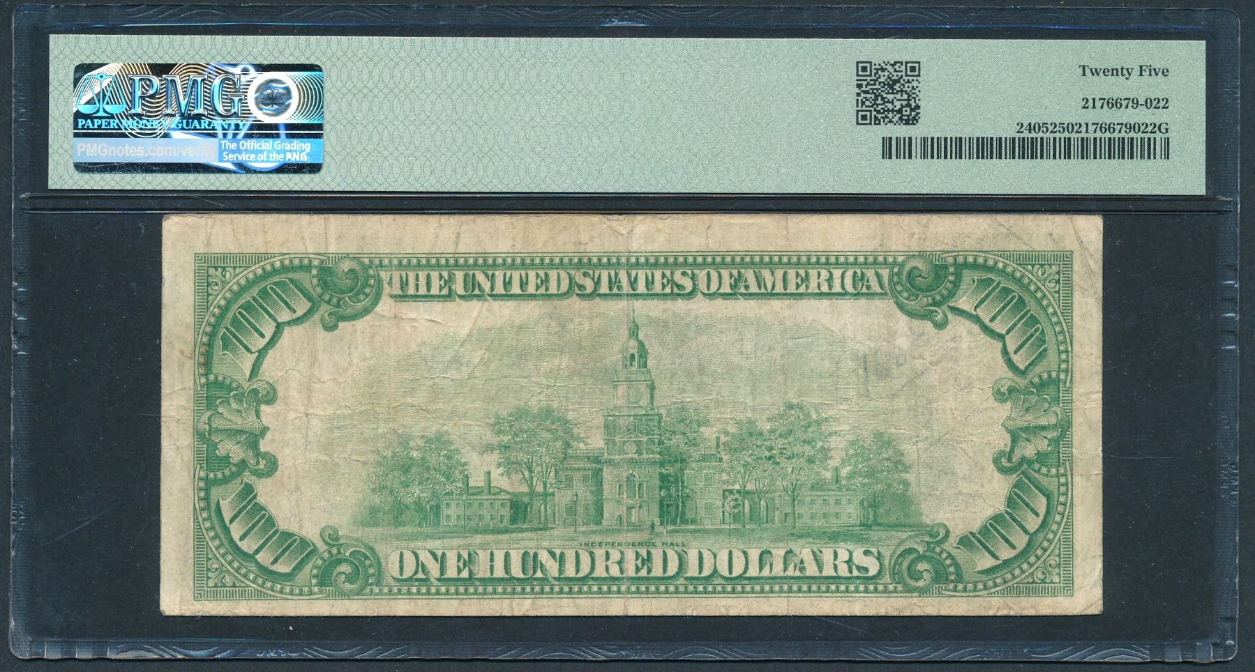 1928 $100 Gold Certificate PMG 25