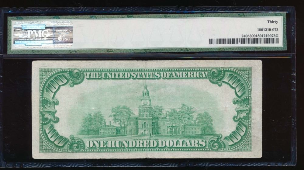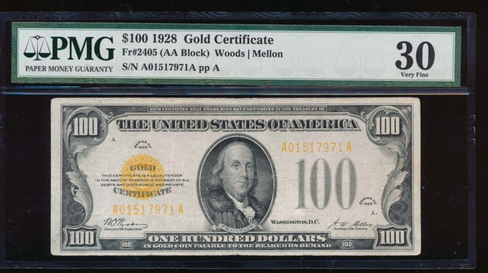 One 1928 $100 Gold Certificate PMG 30.
