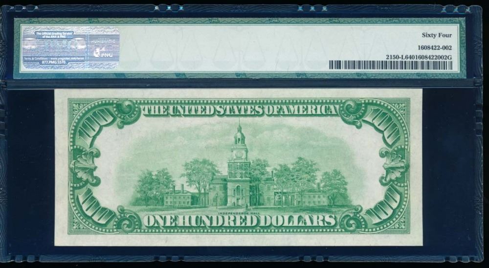 One 1928 $100 San Francisco Federal Reserve Note PMG 64.
