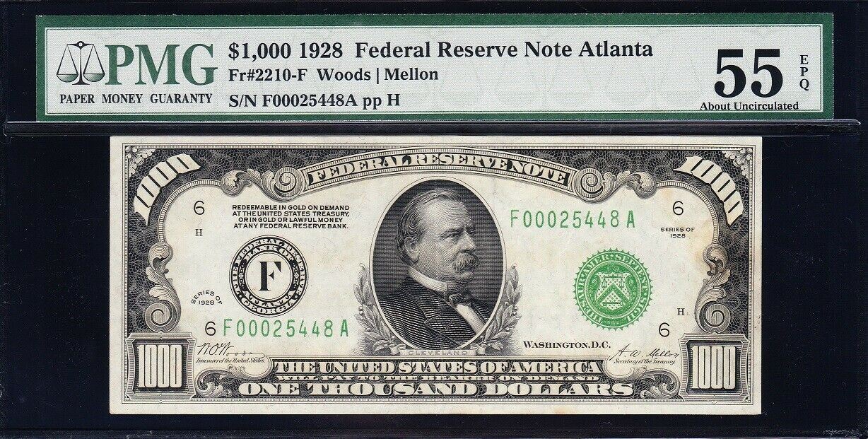 One 1928 $1000 Atlanta Federal Reserve Note PMG 55EPQ.