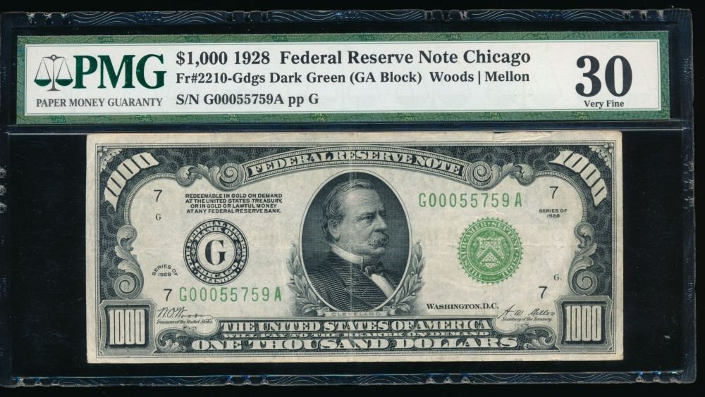 One 1928 $1000 Chicago FRN PMG 30.