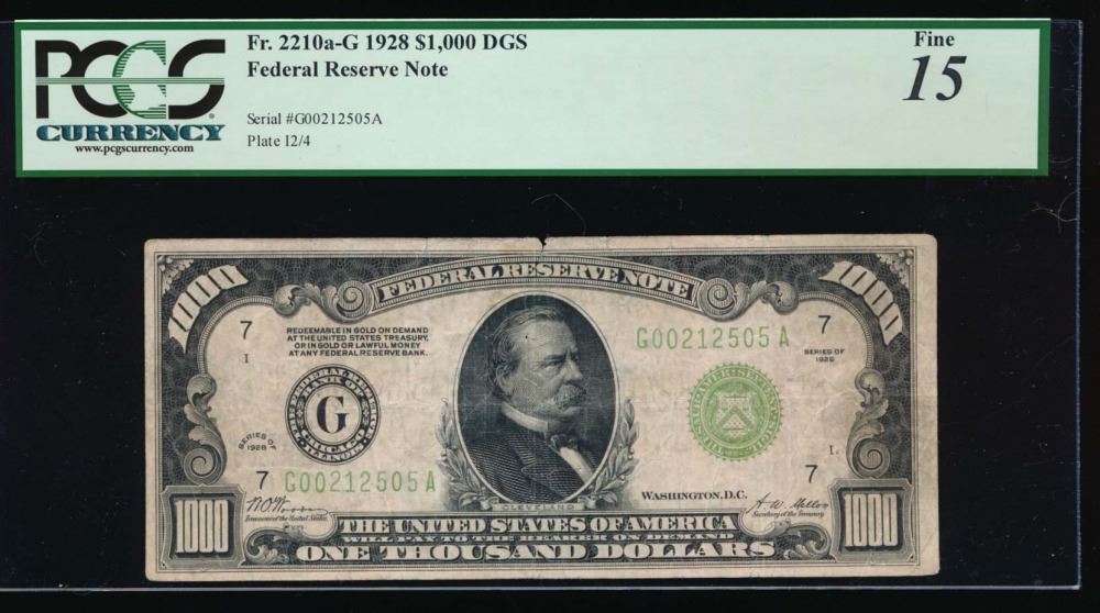 One 1928 $1000 Chicago Federal Reserve Note PCGS 15.